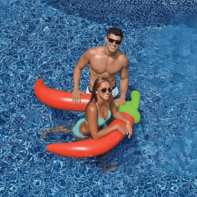 Découvrez notre jeu gonflable "Les piments inséparables", une bouée au design amusant de 137 x 130 x 25,50 cm. Parfait pour s'amuser entre amis ou en famille, c'est l'accessoire idéal pour des journées aquatiques inoubliables.